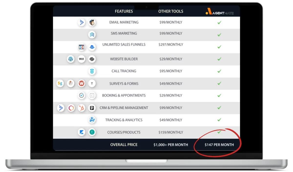 Instead of paying up to $1000 per month just to have your business run, you can have your whole business under one roof and ONE monthly subscription of $147...